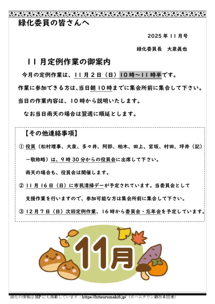 (2)トップメニューに緑化委員会の作業記録「鶴牧グリーンパーク」を追加しました。