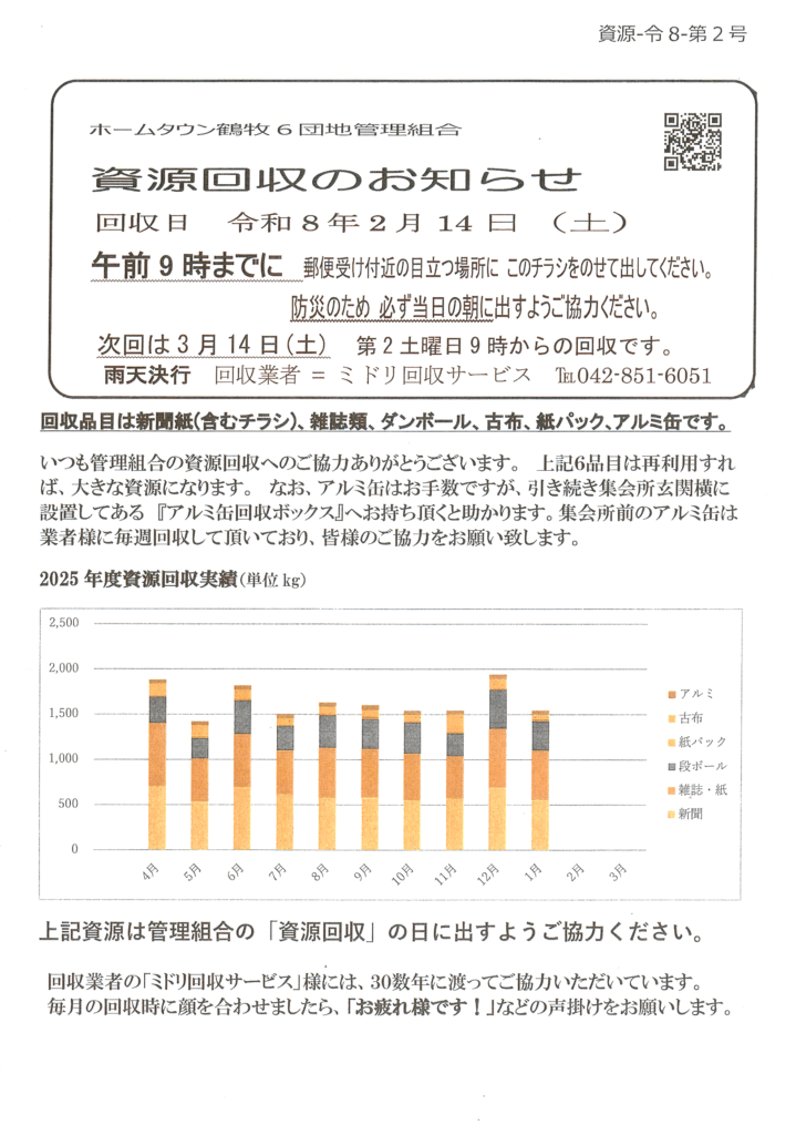 次回は2月14日(土)第2土曜日 9時からの回収です。