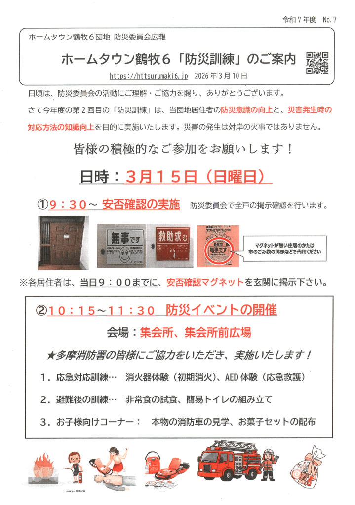 3月15日(日)今年度2回目の防災訓練を実施します。